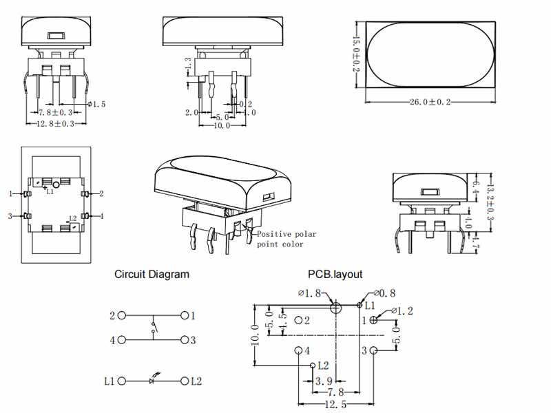 帶燈輕觸開關(guān)TS15-4TW-R-S