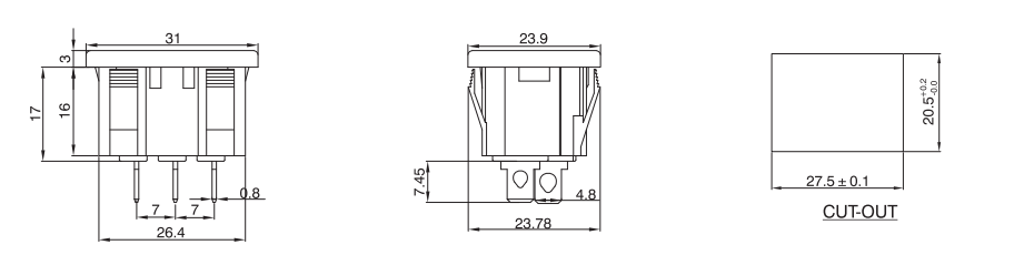 治具插座S-03系列,單插、二合一、三合一保險插座等多種規格,大電流10A ,15A,產品通過UL VDE CCC CB等認證,常見于家用電器,音響功放機等