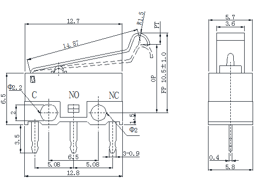 外形尺寸:12.8*5.8mm